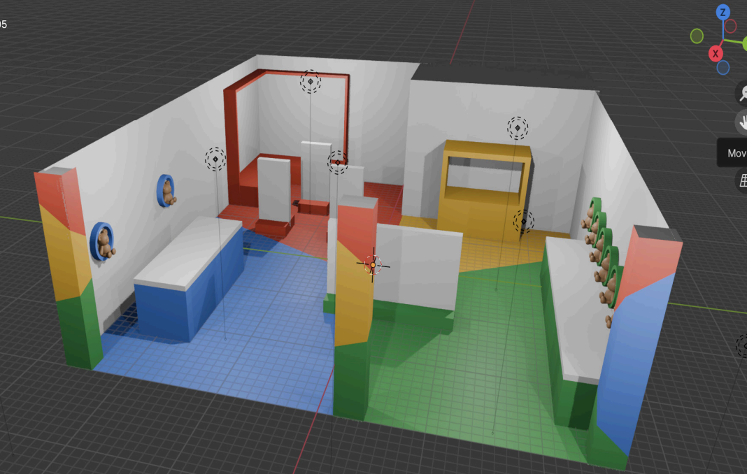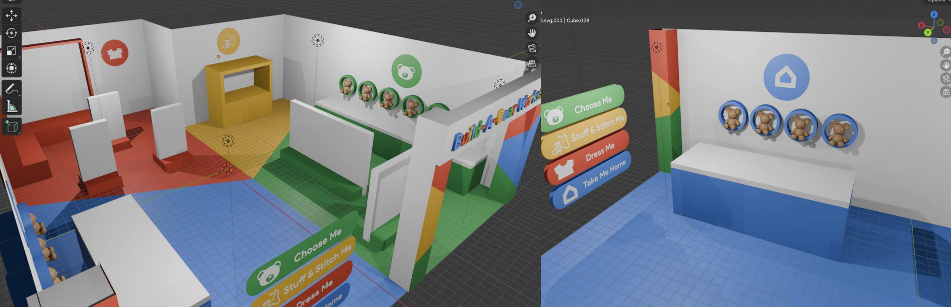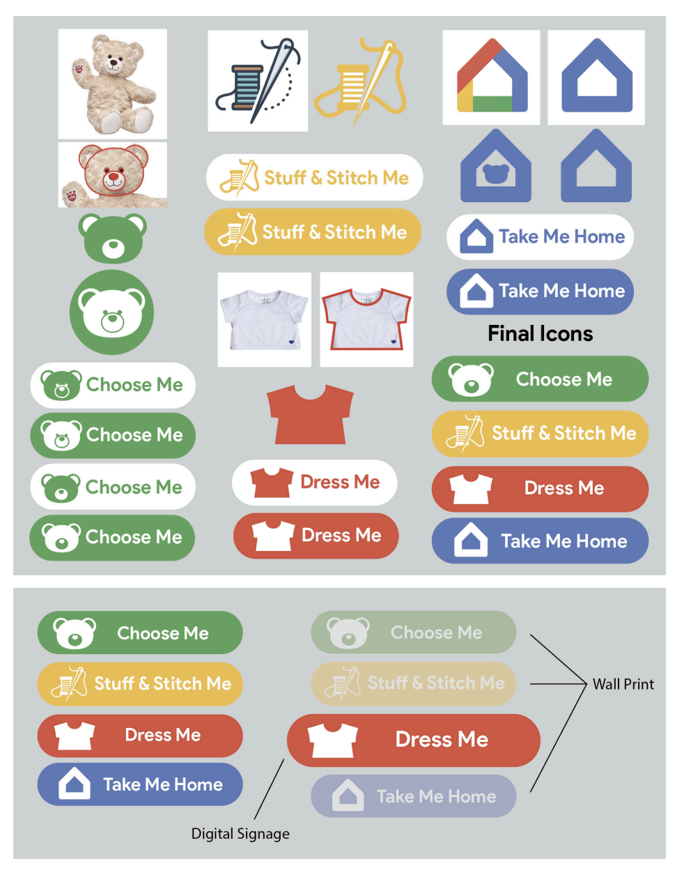 I chose the retail space of Build-A-Bear Workshop in Westfield Belconnen, and rebranded the space under Google’s aesthetic, complete with iconography, colour palette, and typography. By integrating Google’s minimalistic aesthetic and Build-A-Bear’s interactive customer experience, the solution created an intuitive system that not only reflects Google’s branding, but also helps users in orientation as they move through the bear-making process. Key features include a simplified colour-coded system utilising Google’s palette, a custom set of icons for the stages, and a balance between digital and physical elements to guide users effectively.